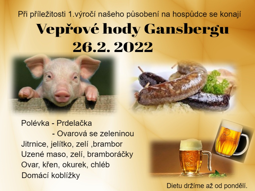 Je to již 2 roky (27.2.2021), co jsme na Gansbergu otevřeli výdejní okénko. Máme takové malé výročí a chtěli bychom vám poděkovat za projevenou přízeň. Moc nás těší vaše kladné ohlasy a recenze. Vykročili jsme 27.2.2023 - doufejme tou pravou nohou , s úsměvem a dobrou náladou vstříc třetímu roku našeho působení na Gansbergu. Zde je malá rekapitulace našeho působení v roce 2022. Ještě jednou velké díky- kolektiv hospůdky Pavel, Vlaďka a Broňa